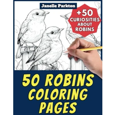 50 Robins Coloring Pages Book for Kids and Adults: +50 Interesting Facts about Robins. Children Grown Ups. Color Learn with Janelle Animals Vol. 264
