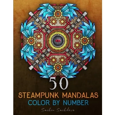 50 Steampunk Mandalas: Color by Number Coloring book for Adults featuring elements of steam power, clockwork mechanisms, and futuristic imaginings ... (Mandalas Adults)