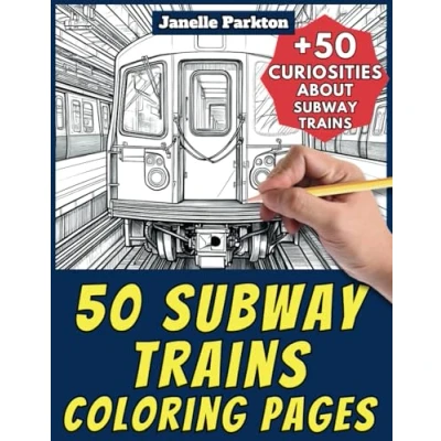 50 Subway Trains Coloring Pages Book for Kids and Adults: +50 Amazing Facts about Trains. Children Grown Ups. Color Learn with Janelle Vehicles Vol. 81