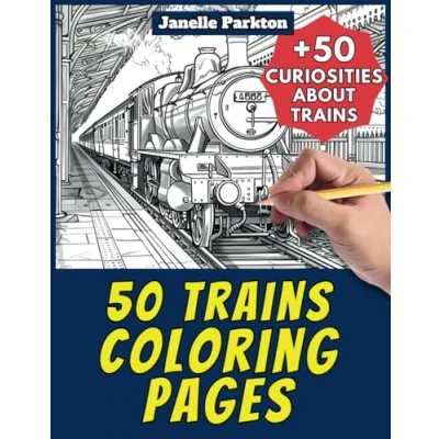 50 Trains Coloring Pages Book for Kids and Adults: +50 Amazing Facts about Trains. Children Grown Ups. Color Learn with Janelle Vehicles Vol. 5