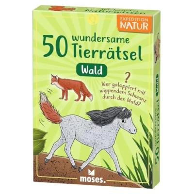 Spielend lernen Wer kann kopfüber den Baum runterlaufen Wer tanzt wie eine leuchtende Kerze Spannende Fragen rund um die im Wald lebenden Tiere geben Kindern die Möglichkeit ihr Wissen zu testen und zu erweitern Expedition Natur Die beliebte Reihe des moses. Verlags vermittelt Naturwissen auf eine spielerische Art und Weise. Perfekt für clevere Kids, die mehr über die Waldbewohner erfahren wollen Kniffliger Rätselspaß Die kleinen Natur-Experten erhalten als Tipp nur eine rätselhafte Beschreibung und eine geheimnisvolle Illustration. Welches Tier steckt wohl dahinter Humorvolle Illustrationen Die liebevoll gestalteten Quizkarten sehen nicht nur lustig aus, sondern liefern oft den entscheidenden Hinweis, um das Rätsel zu lösen International products have separate terms, are sold from abroad and may differ from local products, including fit, age ratings, and language of product, labeling or instructions.