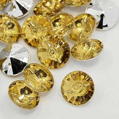 50 x Jonquil Yellow Round 15mm Acrylic Crystal Effect Faux Rhinestone 1 Hole Sewing Buttons Crafts, Knitting, Bling