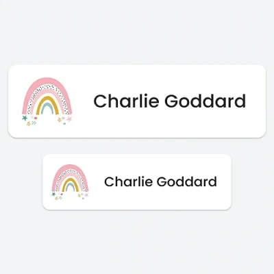 50 x No Iron Medium Personalised Stick On Waterproof Washable Name Labels Great for Clothes, School Uniform, Equipment, Shoes and Much More. School, Nursery, Day Care, Hospital Chasing Rainbows