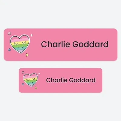 50 x No Iron Medium Personalised Stick On Waterproof Washable Name Labels Great for Clothes, School Uniform, Equipment, Shoes and Much More. School, Nursery, Day Care, Hospital Rainbow Heart