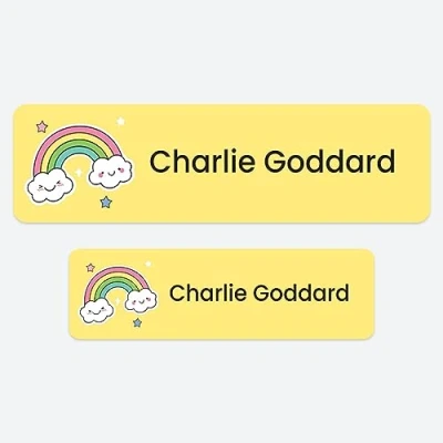 50 x No Iron Medium Personalised Stick On Waterproof Washable Name Labels Great for Clothes, School Uniform, Equipment, Shoes and Much More. School, Nursery, Day Care, Hospital Rainbow Stars