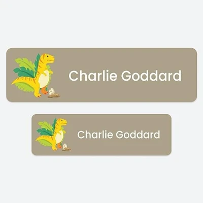50 x No Iron Medium Personalised Stick On Waterproof Washable Name Labels Great for Clothes, School Uniform, Equipment, Shoes and Much More. School, Nursery, Day Care, Hospital Yellow Dinosaur