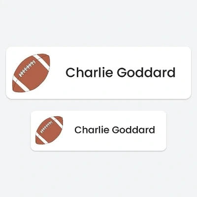 50 x No Iron Personalised Stick On Waterproof Washable Name Labels Great for Clothes, School Uniform, Equipment, Shoes and Much More. School, Nursery, Day Care, Hospital Rugby Ball
