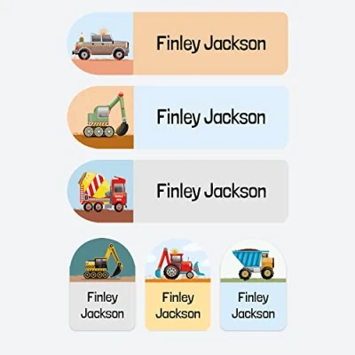 50 x No Iron Personalised Stick On Waterproof Washable Name Labels Great for Clothes, School Uniform, Equipment, Shoes. School, Nursery, Day Care, Hospital Construction Trucks & Diggers