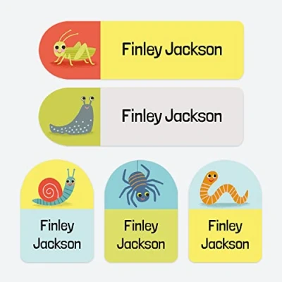 50 x No Iron Personalised Stick On Waterproof Washable Name Labels Great for Clothes, School Uniform, Equipment, Shoes. School, Nursery, Day Care, Hospital Happy Bugs Spider