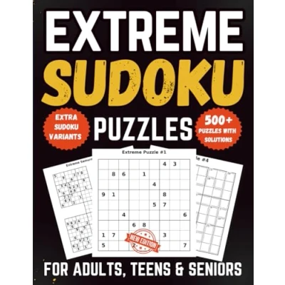 500+ Extreme Sudoku Puzzles for Adults, Teens & Seniors: Very Challenging with Solutions, Bonus Variants, and Free Extra (Classic Collection)