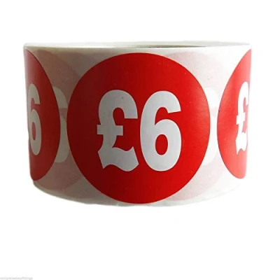 500 x RED Sign SELF Adhesive Stickers Sticky Labels Swing for Retail Price Display of (50p, 99p, £1, £2, £3, £4 Upto £50) (RED Sticker, £6 ROLL OR Sticker)