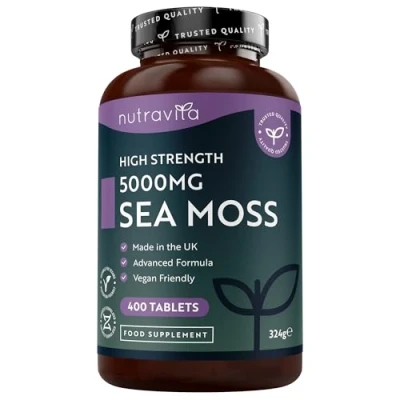 5000mg Sea Moss Tablets 400 Irish Vegan Supplements for 6.5 Months of Supply, Contributes to Normal Energy Yielding Metabolism, Skin & Cognitive Function (EFSA) Made in The UK by Nutravita