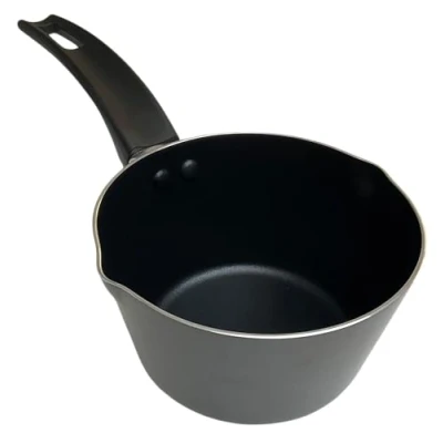 500ml Lightweight Aluminium Non Stick Milk Pan with Dual Pouring Spouts 14cm Diameter Cool Touch Handle