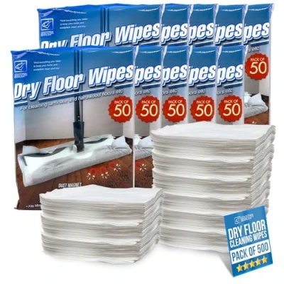 500pk Dry Floor Wipes, 29cm x 21cm Large Wipes Universal Fitting for Swivel Flat Mop, Disposable Dusting Cloths Laminate Mop Refill Pads (10 Pack 50 Cleaning Wipes)