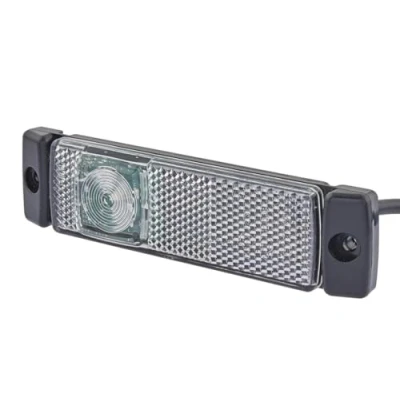 LED position light for surface mounting (horizontal / vertical) - with ECE approval, ADR/GGVS-tested The position light has 2 light functions: Position light / reflector With 1 white LED 24V1.2W, with 1.3 m cable and 2-pole EasyConn receptacle, black housing, 2 holes for fixing screws B4.2 Length: 130mm - Width: 32mm - Height: 16mm - Lamp Type: LED - Number of LEDs: 1 - with pipe Light functions: 2 - with position light/with reflector ECE approved/ADR/GGVS approved - Prot.type (IP Code): IP6K9K Housing Colour: Black