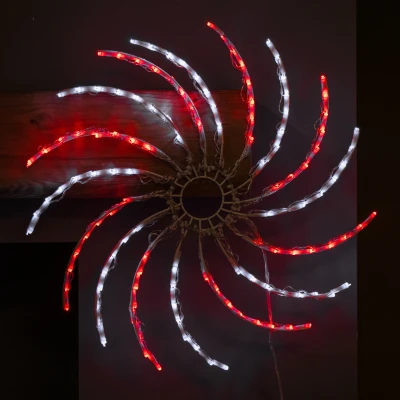 Add bold movement and festive brilliance to your Christmas display with this Light up Christmas Red and White Spinner Light. Designed to catch the eye and elevate your seasonal decor, this dazzling decoration combines traditional Christmas colours with modern lighting effects to deliver a stunning visual centrepiece.. Measuring 50cm in size this decoration features 128 vibrant red and white LED lights arranged across the spinner's symmetrical arms, each arm glows in alternating colours for a dynamic, flashing effect that simulates motion. The result is a captivating light show that brings energy, colour, and joy to any festive setting. Mains powered with a generous 10m clear power cable from product to plug for flexible placement.. Suitable for indoor and sheltered outdoor use.. Product Specifications. 128 Red and White LEDs. 50cm Size. Mains Powered with 10m Power Cable