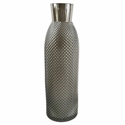 ManoManoGeneral description Smoke grey glass vase with diamond embossing. Thick and high-quality glass vase. Suitable for both real and artificial flowers. Designed for indoor use only. Technical specifications Height: 50 cm Width: 16 cm Depth: 16 cm Top rim diameter: 9.5 cm