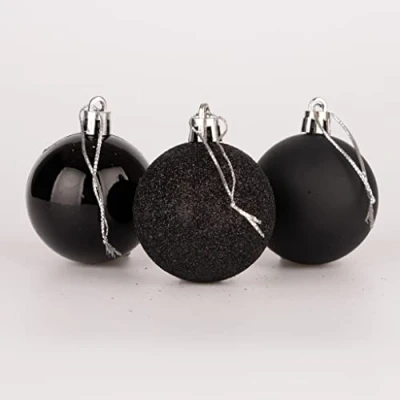 🎄🎅 This pack contains 18 black baubles an assortment of glitter, matte and shiny surface finish. Each bauble measures approximately 5cm and comes with a silver top with a silver string loop attached. 🎄🎅 These Christmas decorations are made of durable plastic to provide a shatterproof, safe finish compared with more traditional glass counterparts. They give the appearance, glitz and glam of glass ornaments without the risk! 🎄🎅 They can also be used to make a garland by threading string or ribbon through the top and hanging them up in the window, from the mantel piece or on the wall. 🎄🎅 Widely used: The durable ball ornaments can be used for indoor & outdoor Christmas decorations, such as Christmas tree, patio, porch 🎄🎅 These Christmassy baubles come in a handy box that they can be stored away in for next year.