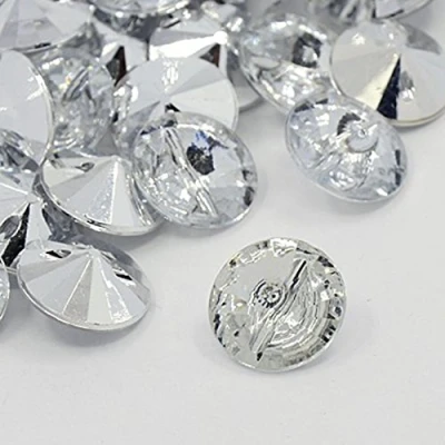 50pcs Clear Round 15mm Acrylic Crystal Rhinestone 1 Hole Sewing Buttons Jewellery Bling, Knitting, Craft Making