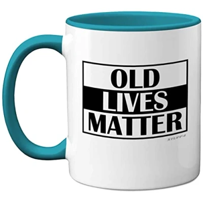 50th 60th 70th Birthday Gifts for Men Women Old Lives Matter Coffee Mug Dad Mum Grandma Grandad Gifts, Father's Day Present, 11oz Ceramic Dishwasher Safe Light Blue Mugs Made in UK