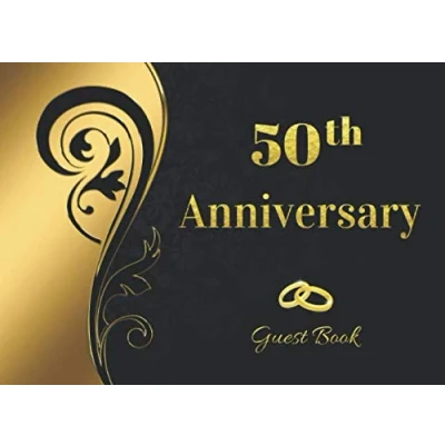 50th ANNIVERSARY: ELEGANT WEDDING ANNIVERSARY GUEST BOOK TO SIGN IN RECORD THEIR SHORT MESSAGES, WISHES AND GREETINGS BONUS GIFT LOG INCLUDED ... GOLD CREATIVE GIFT.