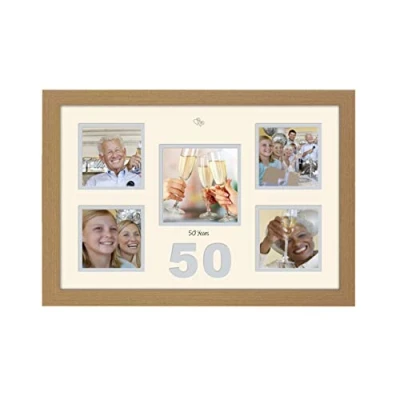 50th Anniversary Photo Frame Golden Wedding 4x4 x4 and 5x5 977D (Oak Finish Cream Mount Grey Inside)