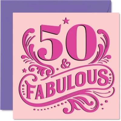 50th Birthday Cards for Women Fabulous Happy Card 50 Year Old Woman Cousin Wife Nanny Friend, 145mm Bday Greeting