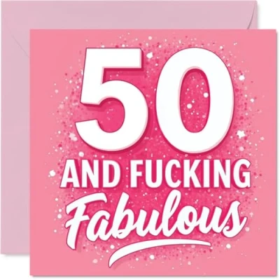 MAKE HER SMILE WITH THIS UNIQUE BIRTHDAY CARD: This exceptional quality birthday card for her shows the design '50 AND FUCKING FABULOUS'. If you are looking for special birthday greetings cards for Women birthday card then then this happy birthday card is bound to make her smile. Not just for birthday gifts for Women this could also be for Cousin, Nan, Friend, Auntie, Grandma, Neighbour, Colleague or Sister. WHAT DO YOU GET: The card is printed on one side and BLANK ON THE INSIDE to allow you to write your very own message. The unique fun design is printed on a specially sourced and environmentally responsible board. At 360 microns thick the natural white one-sided gloss board has a quality look and feel. Supplied with a coloured gummed envelope to complement the design and ready to be sealed and sent in the post. Great Cousin birthday cards, 50th birthday card, Nan birthday card. NO INK SMUDGES: There is nothing worse than writing inside a card to find that the shiny surface makes the ink smudge. This is why we use a high quality one sided coated board. The uncoated side will absorb more of the ink from your pen to make smudging a thing of the past. 50th Birthday card for Friend, 50th Birthday card for Auntie, 50th Birthday card for Grandma. SIZES: Greeting Card = 145mm x 145mm, Envelope = 155mm x 155mm, Card Thickness = 360 micron. Neighbour 50th birthday card, birthday cards for Colleague, cute birthday cards for Sister, 50th birthday card Cousin, Nan 50th birthday card. MADE AND QUALITY CHECKED IN THE UK: We print and manufacture all our products right here in the UK so you can be sure of a fast turnaround and a product that is expertly made. Using environmentally responsible premium board our card is conscious of the responsible management of the world's forests - perfect birthday cards for Women, fun birthday cards for her, Nan 50th birthday cards, female birthday cards.