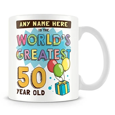 50th Birthday Gift for Men Personalised Mug/Cup Add Name Worlds Greatest Design Blue