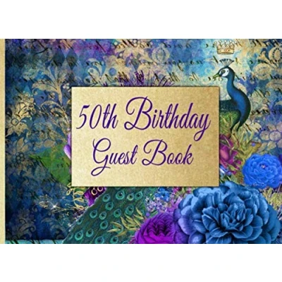 50th Birthday Guest Book: Book for Women Peacock Purple and Gold Guestbook with Gift Log