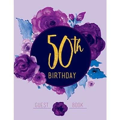 50th Birthday Guest Book: Large Purple Floral Guestbook (Party Book)
