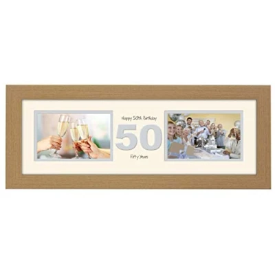 50th Birthday Photo Frame Fiftieth Gift Takes Two 6x4 Landscape Photos 1225A (Oak Finish Cream Mount Grey Inside)