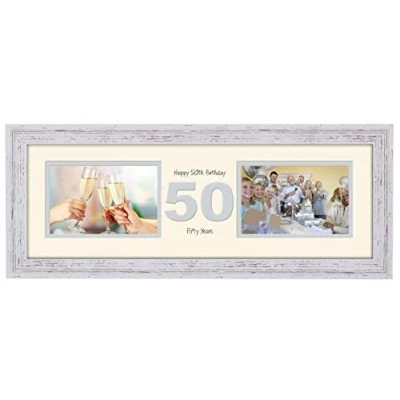 50th Birthday Photo Frame Fiftieth Gift Takes Two 6x4 Landscape Photos 1225A (Shabby Chic Finish Cream Mount Grey Inside)
