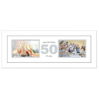 50th Birthday Photo Frame Fiftieth Gift Takes Two 6x4 Landscape Photos 1225A (White Finish White Mount Grey Inside)