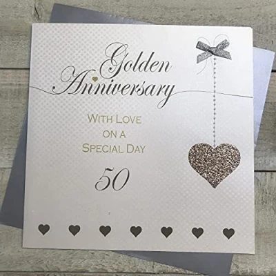 50th Golden Anniversary Card Wedding Glittered Heart by White Cotton Cards XLLA50