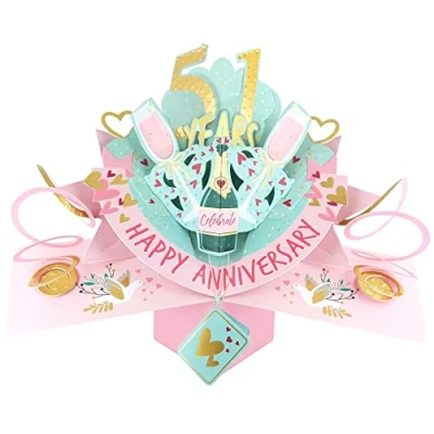 51 Years Happy 51st Anniversary Pop Up Greeting Card Love Kate's 3D Cards POP216MC51