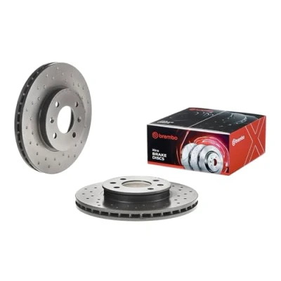 The Brembo Xtra discs are characterised by holes on the brake band which can bring a significant improvement to the performance of the system. With a sporty look, enhanced by UV paint, Brembo Xtra perforated discs combine the guarantee of maximum reliability in terms of strength, performance and safety. ECE R - 90 compliant. The solvent-free ultraviolet coating guarantees high corrosion resistance, also respecting the environment. Marking on the hood allows immediate control of the MIN TH Outer diameter (mm): 315; Nominal thickness (mm) 22; Minimum thickness (mm): 19