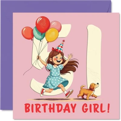 51st Birthday Cards for Women Balloon Girl Happy Card 51 Year Old Woman Auntie Grandma Friend Nan, 145mm Bday Greeting