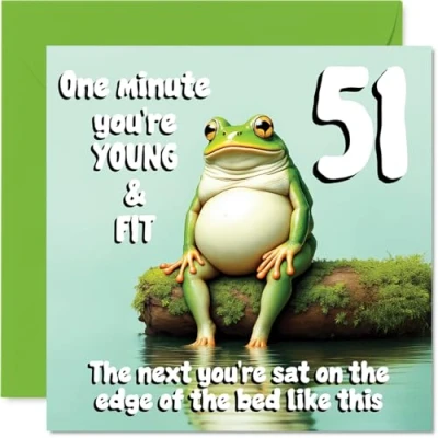 51st Birthday Cards for Women Men Young and Fit Frog Happy Card 51 Year Old Woman Man Husband Cousin Auntie Nanny, 145mm Bday Greeting