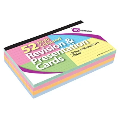 52 Colour Record Cards Ruled Lined Revision Flash Index School Office Note Book