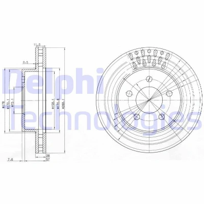 BG3846; Brake disc; DELPHI; 288mm 28,1mm 5 Vented; for JEEP; 52128247AA, 52128247AB, 52128247AC