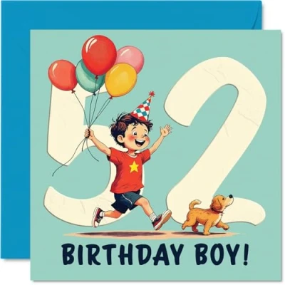 52nd Birthday Cards for Men Balloon Boy Happy Card 52 Year Old Man Colleague Dad Neighbour Husband, 145mm Bday Greeting