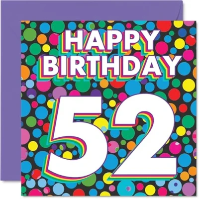 52nd Birthday Cards for Men Women Funky Rainbow Dots Happy Card 52 Year Old Man Woman Cousin Grandma Sister Son, 145mm Bday Greeting