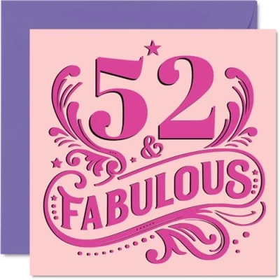 52nd Birthday Cards for Women Fabulous Happy Card 52 Year Old Woman Nan Grandma Wife Cousin, 145mm Bday Greeting