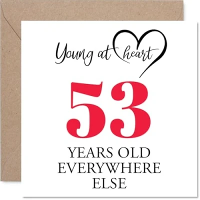 53rd Birthday Cards for Men Women Young at Heart Happy Card 53 Year Old Man Woman Cousin Uncle Husband Brother, 145mm Bday Greeting