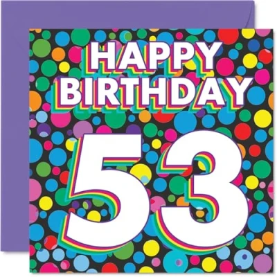 53rd Birthday Cards for Women Men Funky Rainbow Dots Happy Card 53 Year Old Woman Man Grandma Uncle Cousin Sister, 145mm Bday Greeting