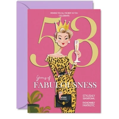 53rd Birthday Cards for Women Years Of Fabulousness Happy Card 53 Year Old Woman Nanny Sister Neighbour Auntie, A5 Bday Greeting