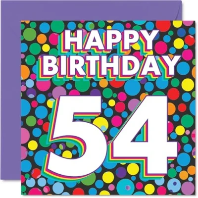 54th Birthday Cards for Men Women Funky Rainbow Dots Happy Card 54 Year Old Man Woman Uncle Neighbour Grandma Cousin, 145mm Bday Greeting