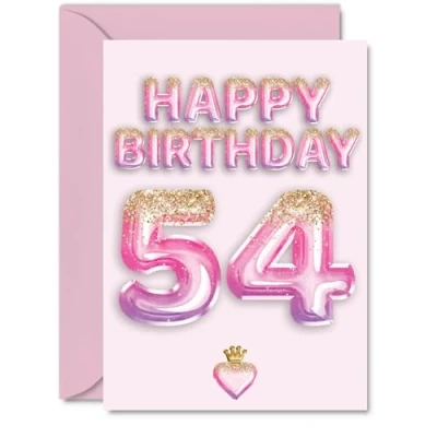 54th Birthday Cards for Men Women Pink & Purple Glitter Balloons Happy Card 54 Year Old Man Woman Dad Neighbour Colleague Nan, A5 Bday Greeting