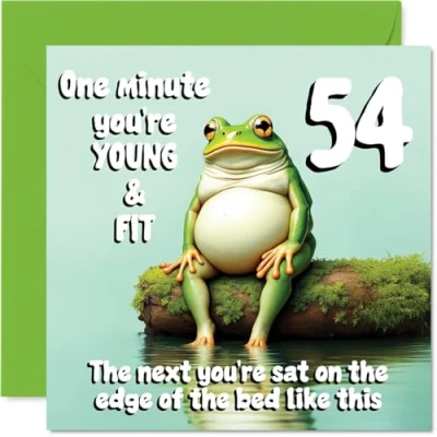 54th Birthday Cards for Men Women Young and Fit Frog Happy Card 54 Year Old Man Woman Sister Grandma Grandad Cousin, 145mm Bday Greeting